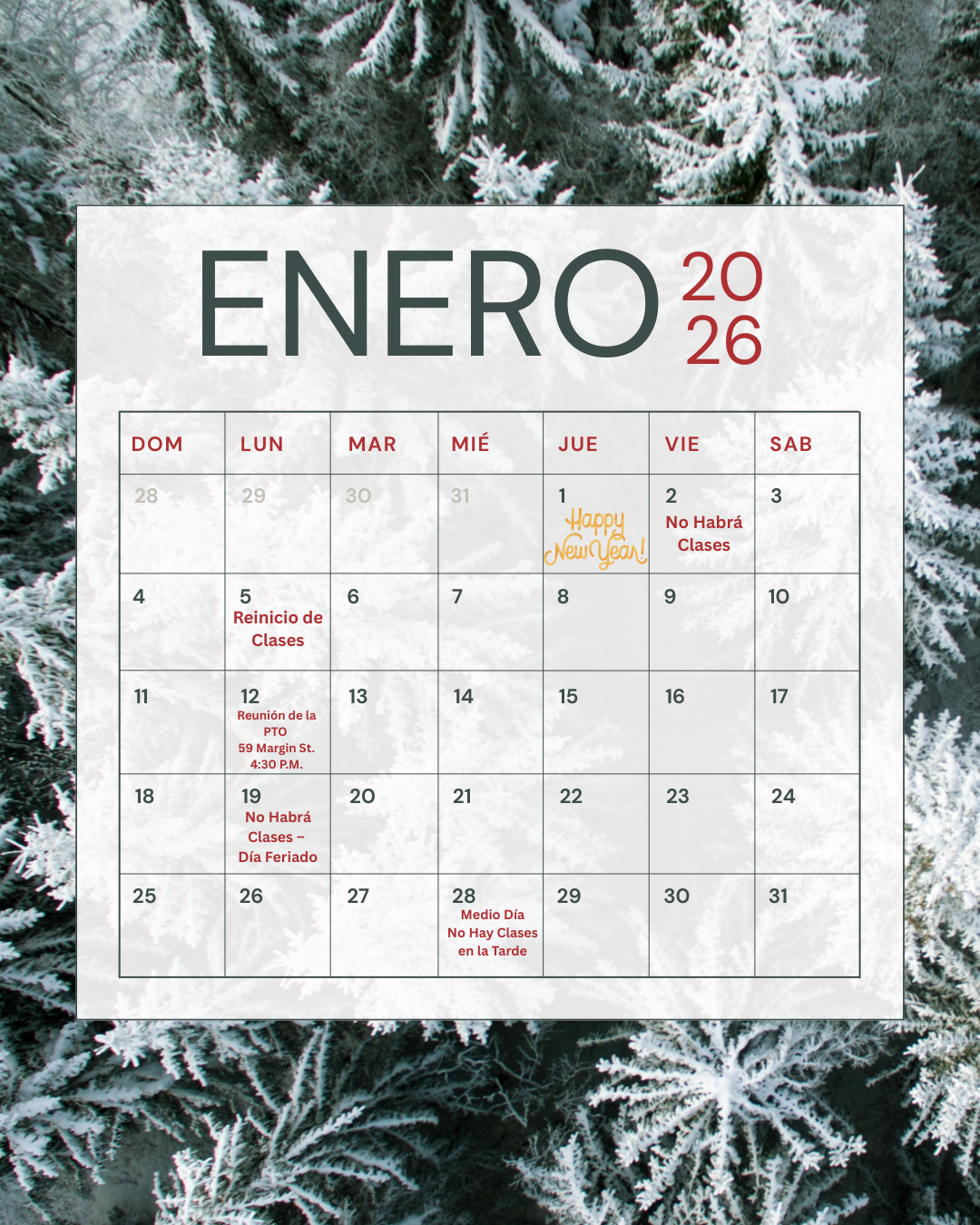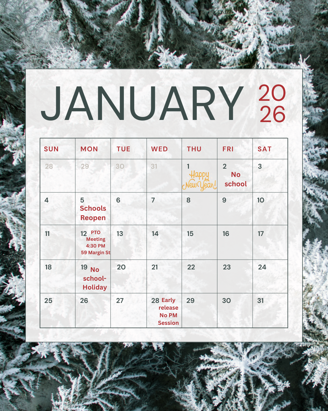 January 2026 Calendar of events